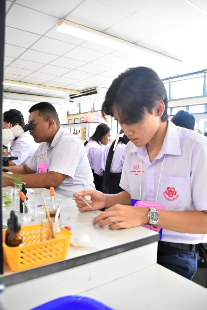 วันที่ 30 ส.ค. 2568 โรงเรียนมัธยมเปี่ยมรัก จังหวัดสุราษฎร์ธานี ร่วมกับศูนย์วิทยาศาสตร์ จัดโครงการเปี่ยมรักนิวเจนท์ กิจกรรมปฏิบัติการทางวิทยาศาสตร์ นักเรียนระดับชั้นมัธยมศึกษาปีที่ 4-6 ซึ่งเป็นกิจกรรมอบรมเชิงปฏิบัติการในหัวข้อ การศึกษาเซลล์ของสิ่งมีชีวิตโดยใช้กล้องจุลทรรศน์และการไทเทรตกรด-เบส โดยมีคณาจารย์จากสาขาวิชาชีววิทยา และสาขาวิชาเคมีเป็นวิทยากร